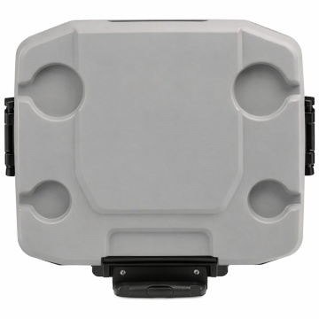The Igloo MaxCold 62 QT cool box with wheels is perfect for all types of outdoor activities, from street food commercial catering to camping trips. The new 2026 design Igloo MaxCold 58 litre cooler is easy to transport with oversized wheels and telescopic handle. 62 QT 58 litre chilled or frozen storage. In test conditions, this cool box can keep ice frozen for up to 5 days. CFC free Eco friendly THERMECOOL foam insulation in body and lid. Cool riser tech increases cold retention. Antimicrobial liner inhibits odours and stains. Wheels for maximum mobility (under test conditions). Four self draining drink holders on the lid. Locking telescoping pull handle. Swing up handles for easy lifting. Stores upright 2 litre drinks bottles. Holds 98 x 330ml standard soft drink cans. Triple snap leak resistant drain plug Colour: grey body, black trim and handles. Empty cool box weight with wheels: 6.3 kg. External dimensions: Length 46 cm. Width 50 cm. Height 55 cm. (without handle)